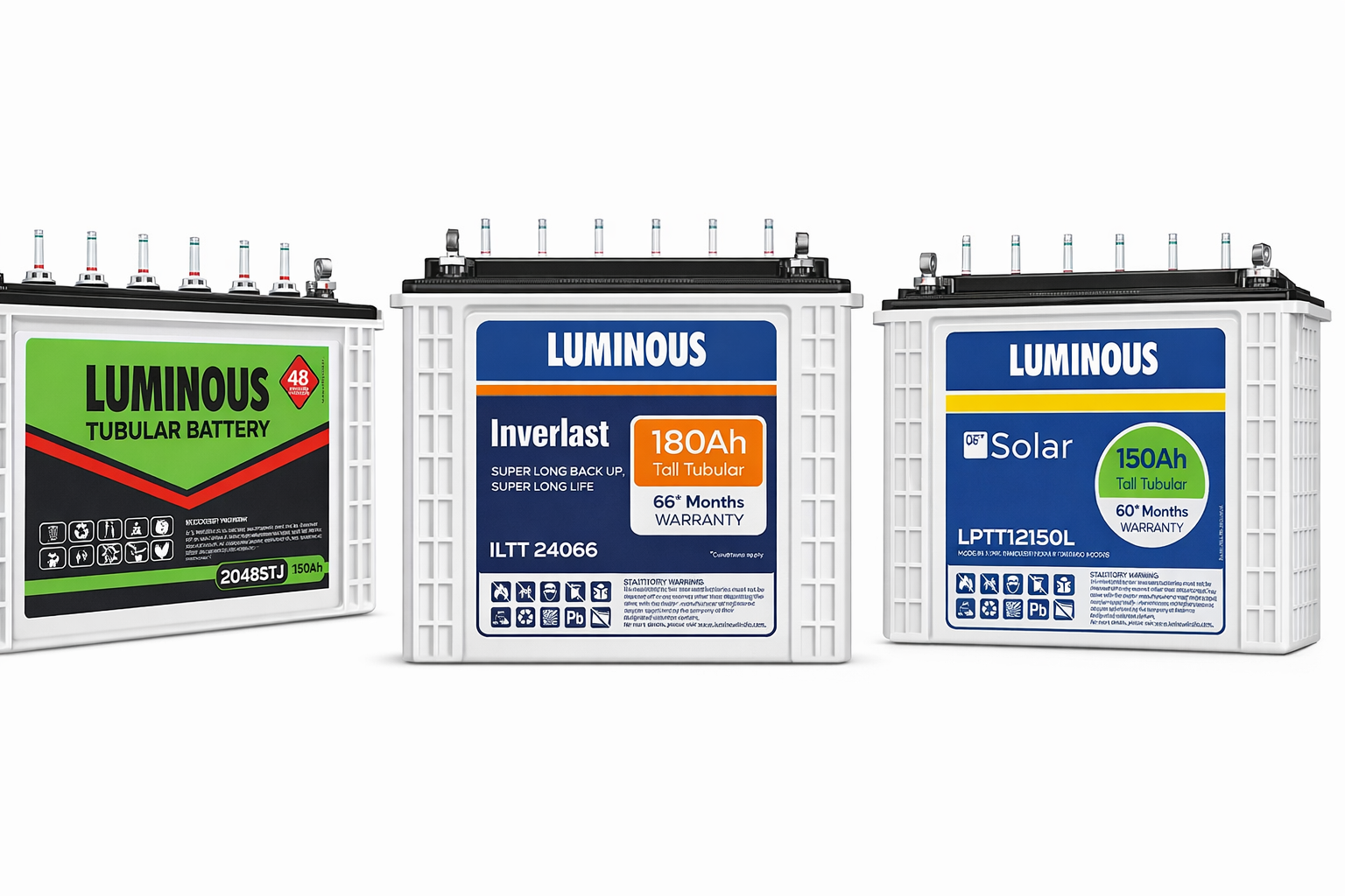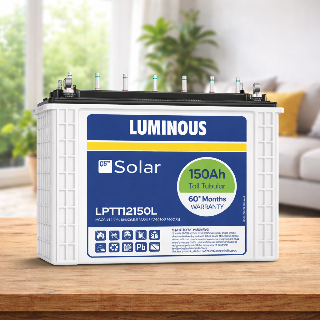 Luminous offers a wide range of batteries designed to meet diverse power backup and solar energy requirements. From tall tubular batteries built for long-duration backup to solar batteries optimized for renewable energy storage, each model is engineered for durability and efficiency. These batteries are designed with advanced plate technology to ensure faster charging and consistent performance. Whether for residential inverters or solar systems, Luminous batteries deliver reliable and long-lasting power support.